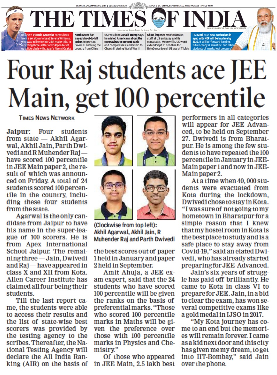 Allen Career Institute On Twitter Jeemain2020 Allenites Accept Every Challenge Outperform In Every Situation All Four Rajasthan Toppers Hails From Allenkota Allenkota Deshkicoaching Timesofindia Toiindianews Drrpnishank