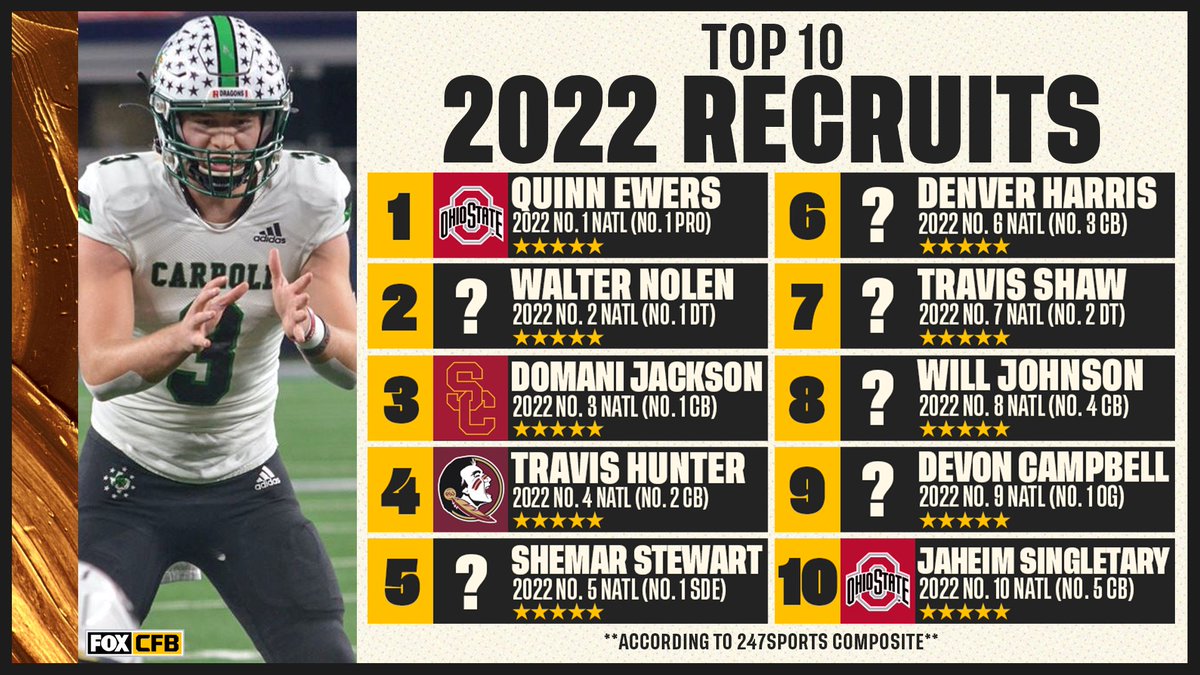 Fox College Football On Twitter Two Of The Top 10 Recruits In The 2022 Class Are Already Committed To Ohiostatefb Which Of These Undecided Players Do You Want To Sign With